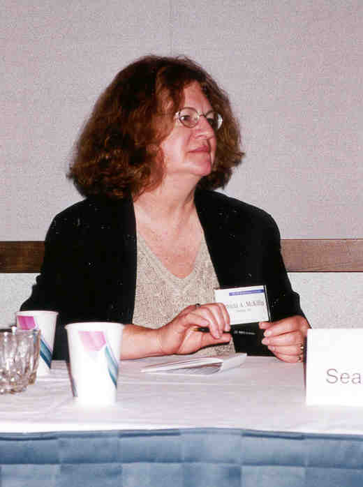 Later, McKillip did a reading from her forthcoming novel, The Tower at Stony Wood. She said it was inspired by the Loreena McKennitt song "The Lady of Shalott", which is a song McKennitt did to Tennyson's poem. Afterwards, I spoke to her again, and was going to take a picture of her and David Lunde, but ran out of film. Lunde gave me a roll, and I took these pictures: