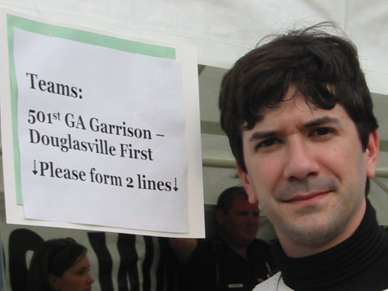 One advantage of the 501st being a numeric name...we have first listing! And our own check-in booth! Albin, you planned it this way when you named the group, admit it. The trooper is the team captain, Evan.